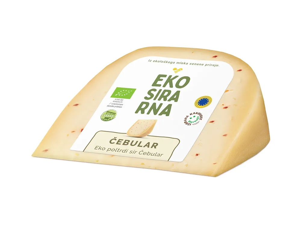 Ekološki sir Čebular vedno poskrbi za največje razvajanje brbončic. Je naš najbolj prodajan sir z dodatki, saj je njegov okus, ki ga nadgradijo mešanica čebule, česna, paprike, ingverja in hrena, tako unikaten in bogat, da zares pusti pečat. Spremlja ga nepozabna aroma. Sir kljub dodanim zeliščem, ki bi lahko dodala pikantnost, pri okusu tega ne kaže. Praktično ne potrebuje ”spremstva” v obliki prilog. Izdelan je iz ekološkega mleka senene prireje.